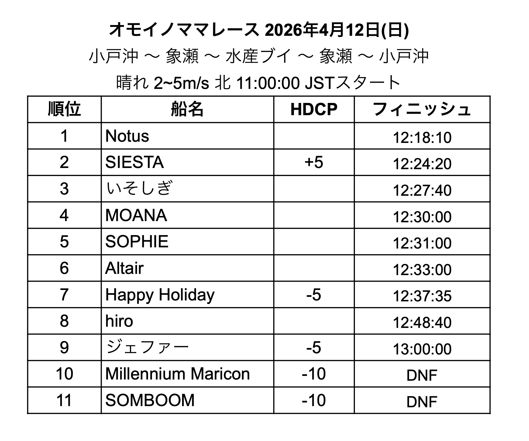 オモイノママレースの結果です! 今年最後のオモイノママレース! 今回のレースはい ...